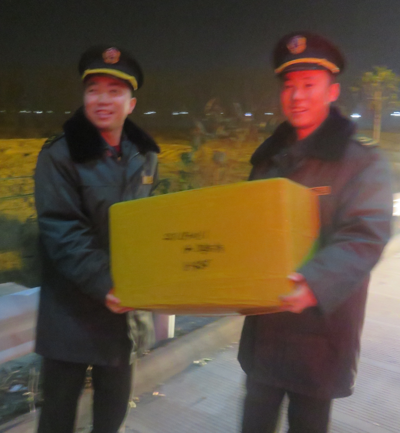 11月19日21時左右,一輛京AQ0560拍照的貨車在鄭口收費站上道口等待,疏導(dǎo)崔曉兵了解是因為大霧封路后,車隊后面的車輛不能上路。得知這一情況后,我站值班人員隨即來到車前幫助貨車司機搬運貨物,隨著時間的進行,半個多小時過去以后,在崔曉兵、張銀浩、房超、張鈺朋、吳少博五人的努力下,車里的貨物滿滿的了,車主連聲道謝,并掏出來錢遞給值班人員。值班人員人員笑著說:“錢是不能要的,我們是有紀律的,服務(wù)司乘是我們的責(zé)任,祝您一路順風(fēng)!”車主聽后,對我們值班人員抱以了最好的感謝,我們幾個的臉上也露出來真心的笑容。