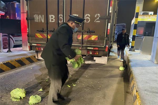 11月19日中班,正值廟鎮收費站收費B班當班作業,一輛車牌號為冀XXXXXX藍牌綠通貨車在收費5車道查驗過程中,車上的甘藍滾落一地。司機非常焦急的邊撿邊說:“這是我第一次拉綠通貨物,尋思多裝點沒事呢”。為了避免發生車輛擁堵,當班班長立即關閉收費5車道,開通了備用車道,將后面的車輛疏導到備用車道,以免影響車輛通行。隨后,收費人員一起幫助司機撿起散落的甘藍。經過大家的努力,終于將所有散落的甘藍重新裝載在車上,司機對收費人員的熱心助人行為表示了感謝。