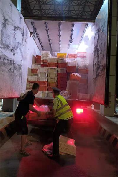 2021年7月18日凌晨3點,一輛裝有新鮮豬肉的綠通車駛入出口03車道,司機要求免費,車輛在車道接受查驗時,廟鎮收費站收費班長平國慶和驗貨員王輝進行驗貨,由于貨車是封閉式貨車,所以在拍攝貨物照片時需要打開后門,但在司機打開后門時,由于貨物裝的比較松散,貼近后門的豬肉一下子掉了下來。看著掉落的貨物,司機犯了難,因為每筐豬肉大概有四五十斤的樣子,搬起來容易,可搬到車里就沒有那么容易了。在司機開口說話前,班長平國慶主動提出幫助司機將貨物合力搬到車上。搬運完畢后,司機向平國慶表示感謝說“真不好意思,給你們添麻煩了啊!真的謝謝你們”,平國慶說“沒事,您不用客氣,這是我們應該做的”。