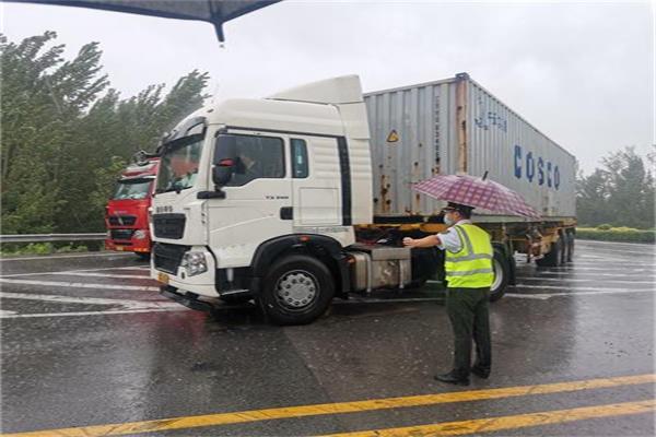7月29日天降大雨,由于天氣原因實行交通管制,廟鎮收費站入口限行“兩客一危”和“黃牌貨車”。但仍有不少車輛涌入收費站廣場,為了防止車輛擁堵,使小型車可以安全快速通行,收費D2班班長及疏導冒雨為司乘人員疏導車輛,耐心勸離限行車輛,并為貨車司機指路。