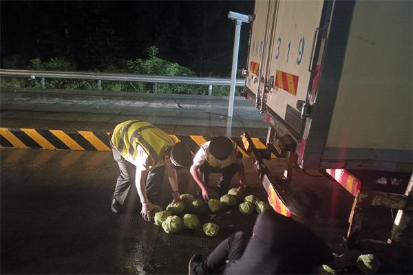 2021年9月19日21點左右,一輛滿載結球甘藍的綠通車輛冒著傾盆大雨駛入廟鎮收費站,司機在配合驗貨人員對所裝載貨物進行查驗時,打開后車門的一瞬間,由于結球甘藍是圓形蔬菜,導致大面積滾落,車道頓時被結球甘藍灑滿,造成了車道堵塞,班長韓國鋒立馬啟動班組應急響應預案,女員工進入崗亭進行發卡收費操作,男職工負責車道疏導工作,將待繳費車輛引導至其他車道放行,并對綠通車輛停滯車道進行了臨時封閉,將車輛疏導完畢后班組人員共同幫助司機拾取貨物,由于雨比較大,雨棚難以阻擋風雨,導致所有參與幫助的人員都被淋濕。在將貨物裝車完畢后,司機要留下一些物品作為感謝,大家拒絕了司機的物品,并接受了司機的口頭感謝。