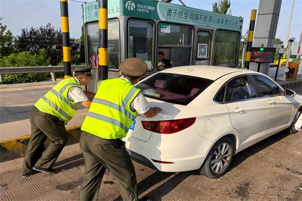 收費員劉仁賓發現這一狀況后,迅速通過對講機通知正在外廣場查驗綠通車的班長平國慶和疏導員邵磊。收費班長立即趕到現場,他沉著冷靜地指揮,第一時間安排開啟出口備用車道,引導后方車輛有序通行,避免了擁堵和事故的發生,同時迅速來到故障車輛旁,主動向司機詢問情況。確定車輛只是突發簡單故障,并無其他嚴重情況,平國慶帶頭俯身,與正在執勤的景縣交警大隊成員合力將故障車輛推至收費窗口,協助司機完成繳費。繳費結束后,再次聯合發力,將車輛推至收費站外的安全區域。班長平國慶主動協助司機聯系附近熟悉的修車廠,憑借以往處理車輛故障的經驗,詳細向維修人員告知車輛故障情況,讓司機能夠安心等待救援。