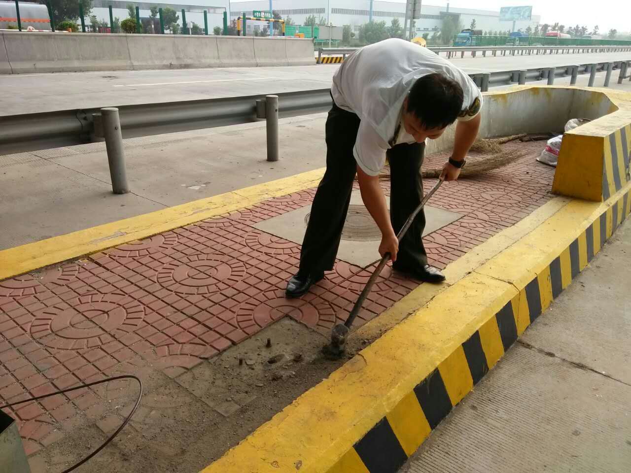 為進(jìn)一步加強(qiáng)夏季汛期安全生產(chǎn)工作,確保高溫期間收費安全形勢穩(wěn)定,進(jìn)一步加景州主線收費站安全生產(chǎn)管理力度,我站開展汛期安全隱患排查。張運(yùn)達(dá)站長發(fā)現(xiàn)收費廣場和島頭豎立著許多長短不一的廢棄柳釘,容易在多雨天氣絆倒過往人員。張寶強(qiáng)站長接到通知后帶領(lǐng)辦公室人員陳思尚和陳彭拿著油錘對凸起的柳釘進(jìn)行了清理,消除了對人員造成傷害的隱患。安全從點滴做起,要努力杜絕一切安全隱患,積極構(gòu)建平安站區(qū)。