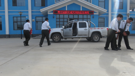 此次演練模擬站區內由于天氣過熱,導致車輛發生自燃,在值班站長的指揮下,當班職工積極進行火情撲救,救治傷員,第一時間撥打119,120,最大限度地化解危機,將損失降到最小。此次演練,組織嚴密,參與職工能夠聽從指揮,積極配合,很好地達到了演練效果。