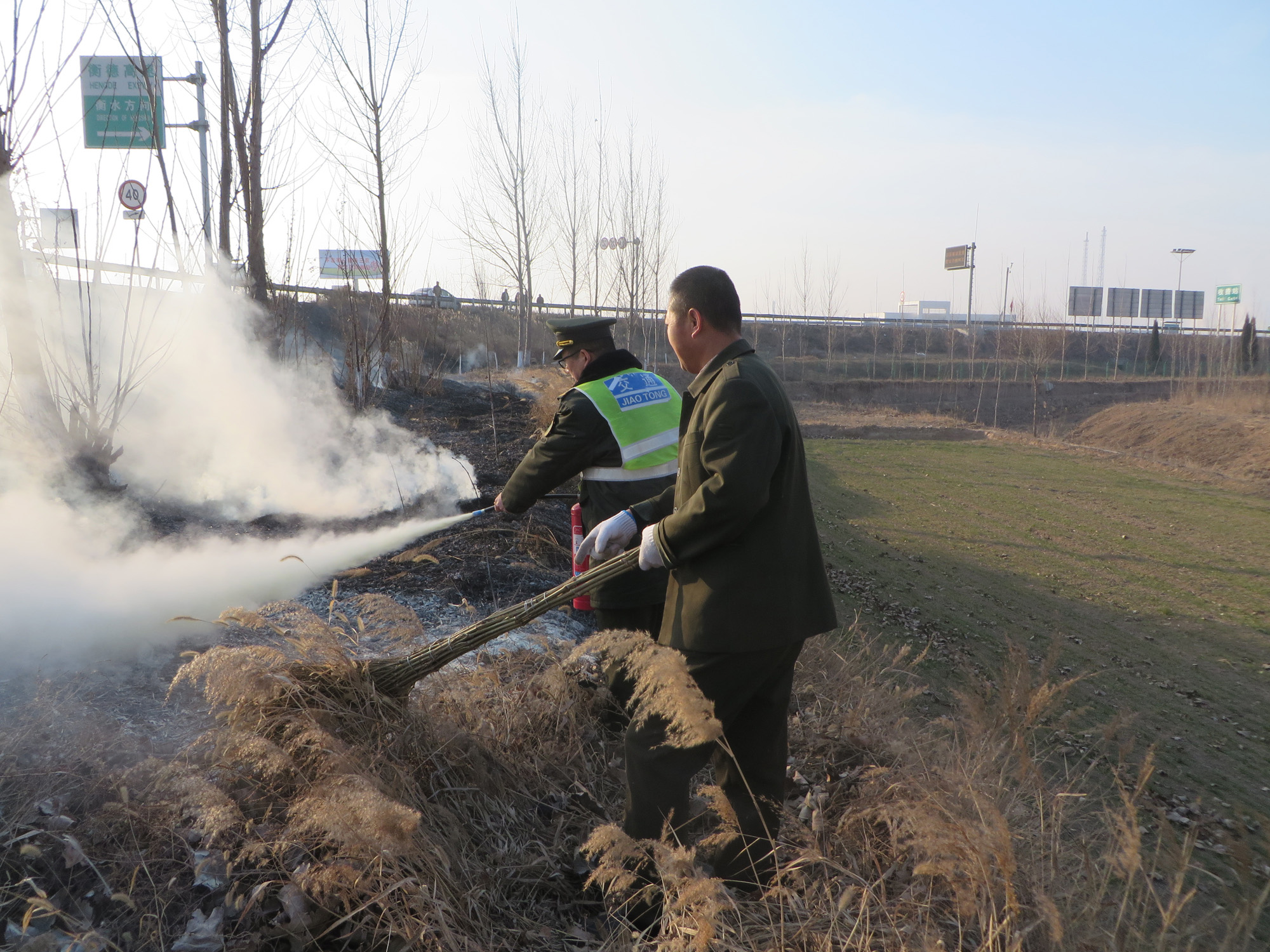 1222日上午8:40分許,廟鎮收費站A班正在上班,發現富德路西邊的邊溝突然著起了大火,濃煙致使行駛的車輛無法正常通行,為了避免發生交通事故和防止火勢蔓延,值班站長曹夢海同志帶領站上人員拿上滅火器、鐵鍬、掃帚等工具立即趕到現場,用滅火器將火撲滅,為了防止再次復燃,拿鐵鍬一點點的把干草及煙灰都埋上,過往的司機看見后,都降下車窗,向我們表達感謝,感謝我們為他們創造了良好的行車環境,看著司乘一張張滿意的笑臉,我們感到非常自豪,做這一切都是值得的,竭誠為過往的司乘服務,創造良好的行車環境,也是我們衡德公司的服務宗旨。