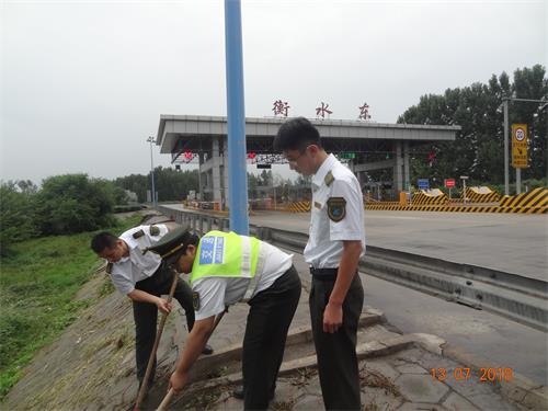 衡水東收費站認真落實上級有關防汛文件精神及要求,提高政治站位,壓實安全生產責任,發揮站防汛應急保障突擊隊作用,積極做好雷雨等惡劣天氣的安全應對措施和防汛工作。