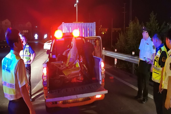 2019年6月18日,21點35分,衡水東收費站收費員正在忙碌的工作中,突然發現一輛電瓶車從高速收費道沖上高速,當班班長王玉龍沖上島頭,大喊攔截該電動車,由于電動車車速過快,很快就消失在茫茫的夜色中。班長王玉龍緊急向站長匯報情況,收費站站長鄭驥飛迅速與高速巡警取得聯系,簡述事件相關情況。并當機立斷決定派車去攔截。由于衡水東站是三方向路口,站長鄭驥飛、副站長張世佳和班長王玉龍在保證自身安全的前提下,兵分三路,分別向大廣高速北京方向,大廣高速大名方向,衡德高速德州方向出發。最后在衡德高速離衡水東收費站2.6公里處攔截到該輛電瓶車。隨后在高速巡警,高速路政的協助下將該女子轉移到龍華收費站外。
