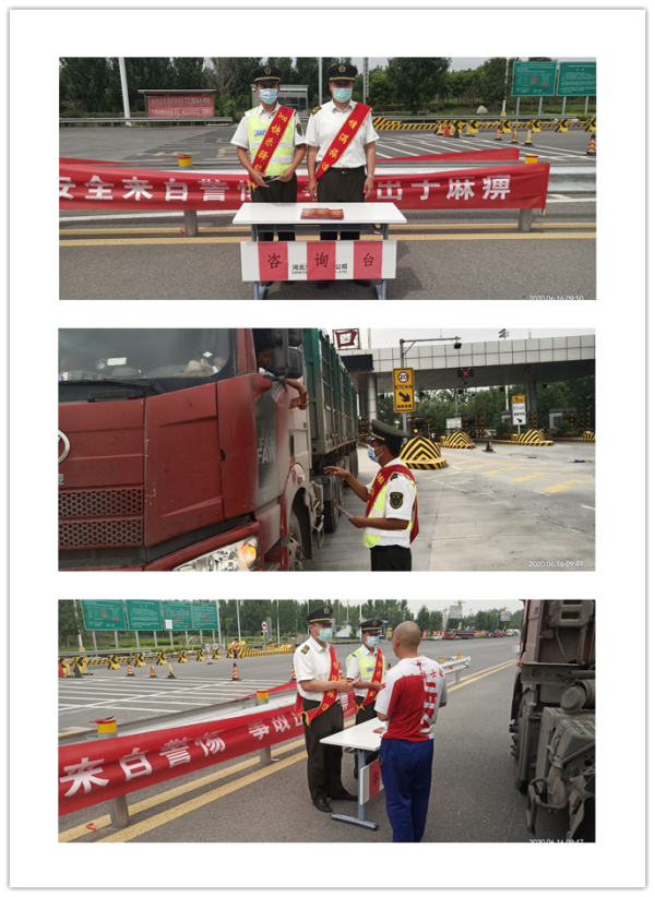 活動(dòng)當(dāng)日,收費(fèi)班組和后勤人員在收費(fèi)廣場(chǎng)懸掛安全橫幅并設(shè)立了安全咨詢臺(tái),為來往司乘發(fā)放安全宣傳彩頁,講解安全行車的注意事項(xiàng)、《河北省安全生產(chǎn)條例》、自救互救等知識(shí),解答司乘人員問題。并結(jié)合6.13浙江油罐車爆炸事件著重對(duì)危險(xiǎn)品車輛司乘人員進(jìn)行了安全宣傳,取得了良好成效。