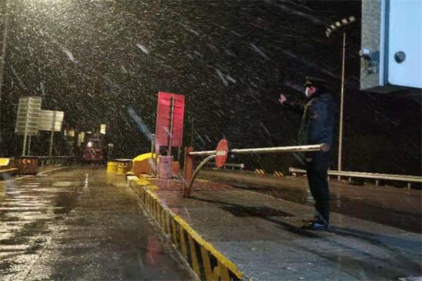 3月1日晚,由于大雪天氣原因,廟鎮收費站上道口限制“兩客一危”車輛以及黃牌貨車上道。由于大雪導致很多貨車司機沒有看清上道口LED屏幕上的限行公告從而陸續開進上道口車道。見此情況,廟鎮收費站A1班班長陳桂巖立刻組織疏導人員站在島頭疏導攔截限行車輛,確保上道口的通行秩序,避免限行車輛來回倒車所引發的安全事故。