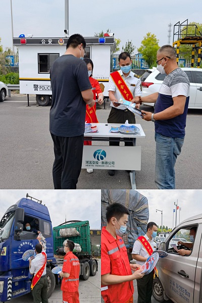活動(dòng)中,職工采取現(xiàn)場講解、發(fā)放宣傳資料等方式開展宣傳活動(dòng),向過往司乘人員解讀感興趣的交通安全知識(shí)、收費(fèi)政策、逃費(fèi)車輛處理等方面的內(nèi)容,針對(duì)司乘就安全方面提出的問題進(jìn)行了詳細(xì)解答,積極做好與司乘的交流互動(dòng),同時(shí)發(fā)放了預(yù)防中暑手冊(cè)和全國安全生產(chǎn)月宣傳資料。