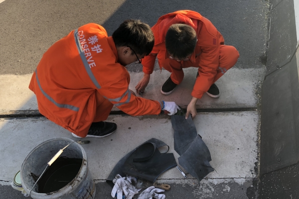 青蘭養護工區為消除安全隱患,確保車輛行駛安全。組織人員對全線橋梁伸縮縫膠條進行檢查并對損壞的膠條進行了修補。在施工過程中工作人員嚴格按照安全規范施工,并做好安全防護。整個施工過程本著符合標準又經濟實用的原則,又快又好的完成了任務,及時排除了隱患。