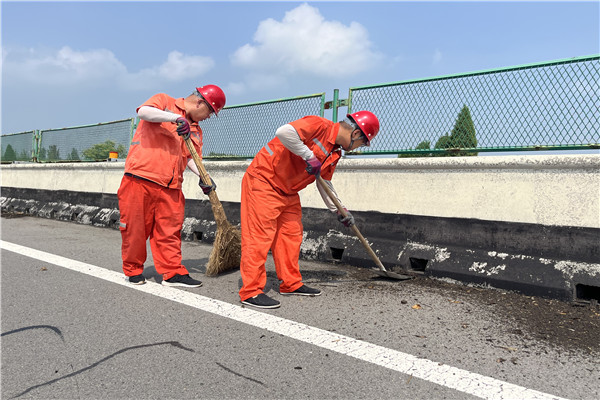 汛期隱患排查方面。在整個汛期過程中,青蘭養護工區始終堅持以領導帶隊檢查和道路橋梁巡查相結合的工作模式,下大力度對高填方路基、路基路面橋涵的排水設施、水浸泡過的路基、積水邊溝、過水積水橋涵等部位進行排查,保障路段橋梁的汛期安全。主汛期期間開展防汛專項隱患排查4次,組織相關股室每天對路段橋梁開展巡查工作,持續對安全防護設施和排水設施進行檢查和維修,及時發現并整治存在的事故隱患,截止目前維修泄水槽67道,收水口667個,攔水帶139米,邊坡回填土方34.5m3,中央分隔帶清理流水槽5公里,排除積水1880m3,極大程度上確保了衡德高速公路安全暢通。
