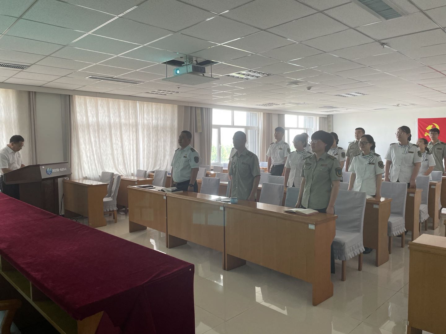 隨后由收費稽查大隊隊長殷海山帶領職工莊嚴宣誓,現場氣氛莊重嚴肅。