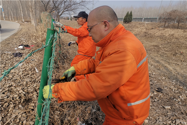 二是對全線隔離柵進行集中修補。春節過后,車流量逐漸增大,道路交通安全形勢逐漸嚴峻。為防止附近村民及牲畜穿越高速,對過往司乘人員造成安全隱患,保障司乘行車安全,集中修補作業已全面展開。