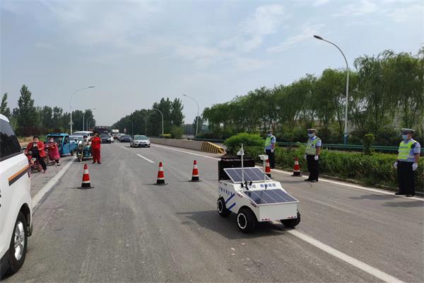 2022年6月16日,多功能示警車在廟鎮收費站開展危化品車輛泄漏應急處置演練中完成了車輛示警,遠程遙控自行走、預警范圍內車輛闖入報警等多個工作。