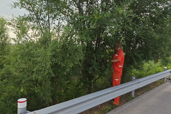 青蘭養護工區養護股人員身著橙色安全服,使用砍刀和鐮刀等工具,化身“橙色剪刀手”。嚴格按照“一看二剪三清”的流程,精準識別被遮擋的標志牌,對延伸至護欄板以內及遮擋標志的枝條進行精準剪除,并及時將散落的枝條清理轉運,確保路面整潔暢通。作業期間,作業人員按規定布設養護作業區,安排專人警示過往車輛,保證施工安全與道路通行兩不誤。