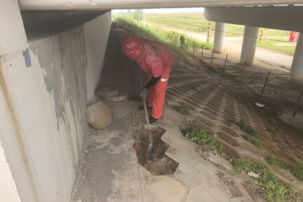 依據(jù)臺賬,青蘭養(yǎng)護工區(qū)橋梁股集中力量開展了水毀修復(fù)工程。通過對錐坡護坡進行加固修復(fù)、修復(fù)沖溝缺口、完善排水設(shè)施等措施,有效消除了結(jié)構(gòu)性安全隱患。同時,對橋面排水系統(tǒng)進行了清淤疏通,確保排水暢通,增強了橋梁應(yīng)對未來強降雨的能力。
