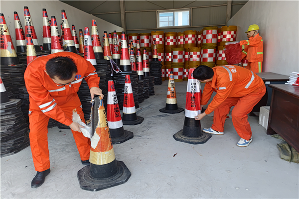近日,青蘭養護工區物資材料股積極響應降本增效號召,對倉庫內一批破舊的反光路錐進行了換膜翻新,讓廢舊物資重新“上崗”,取得了良好成效。