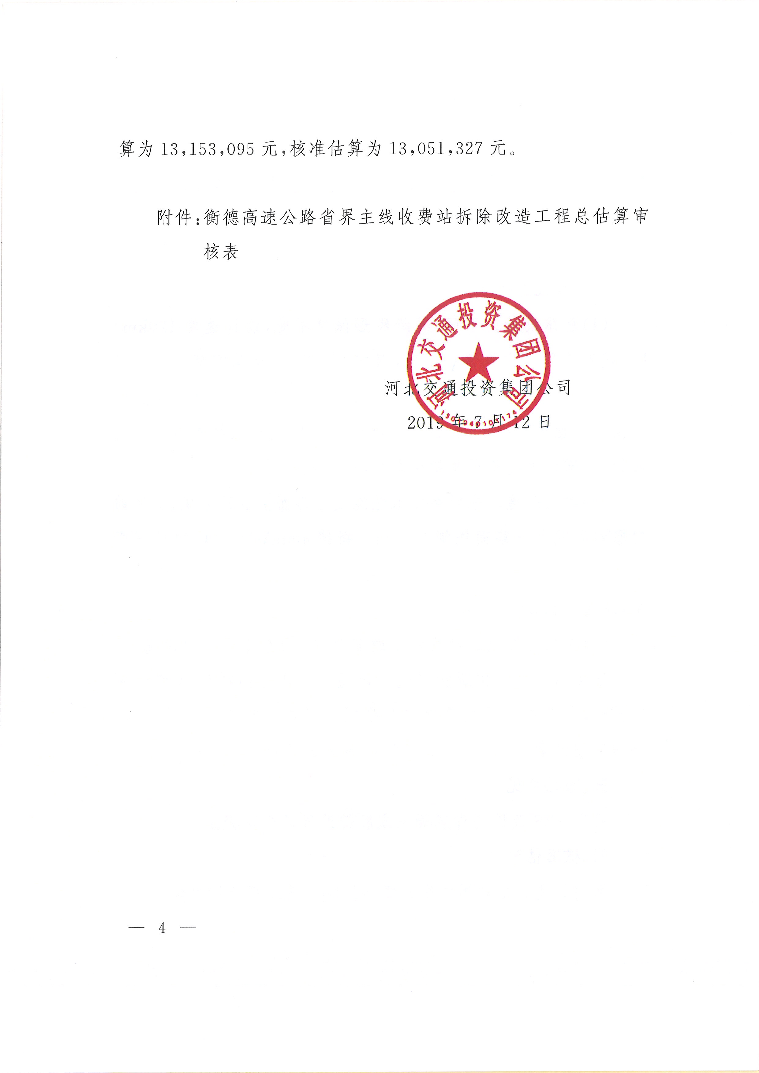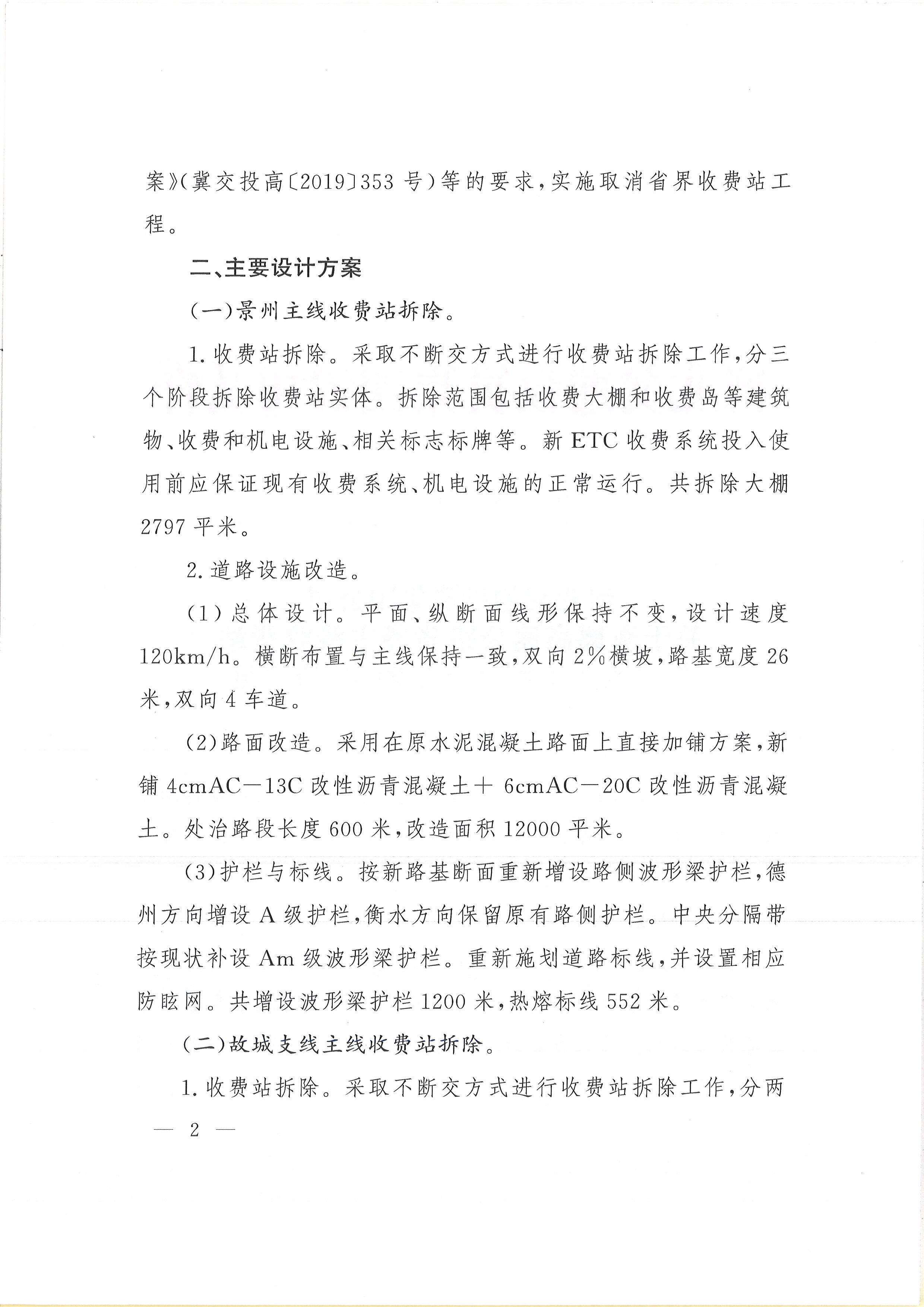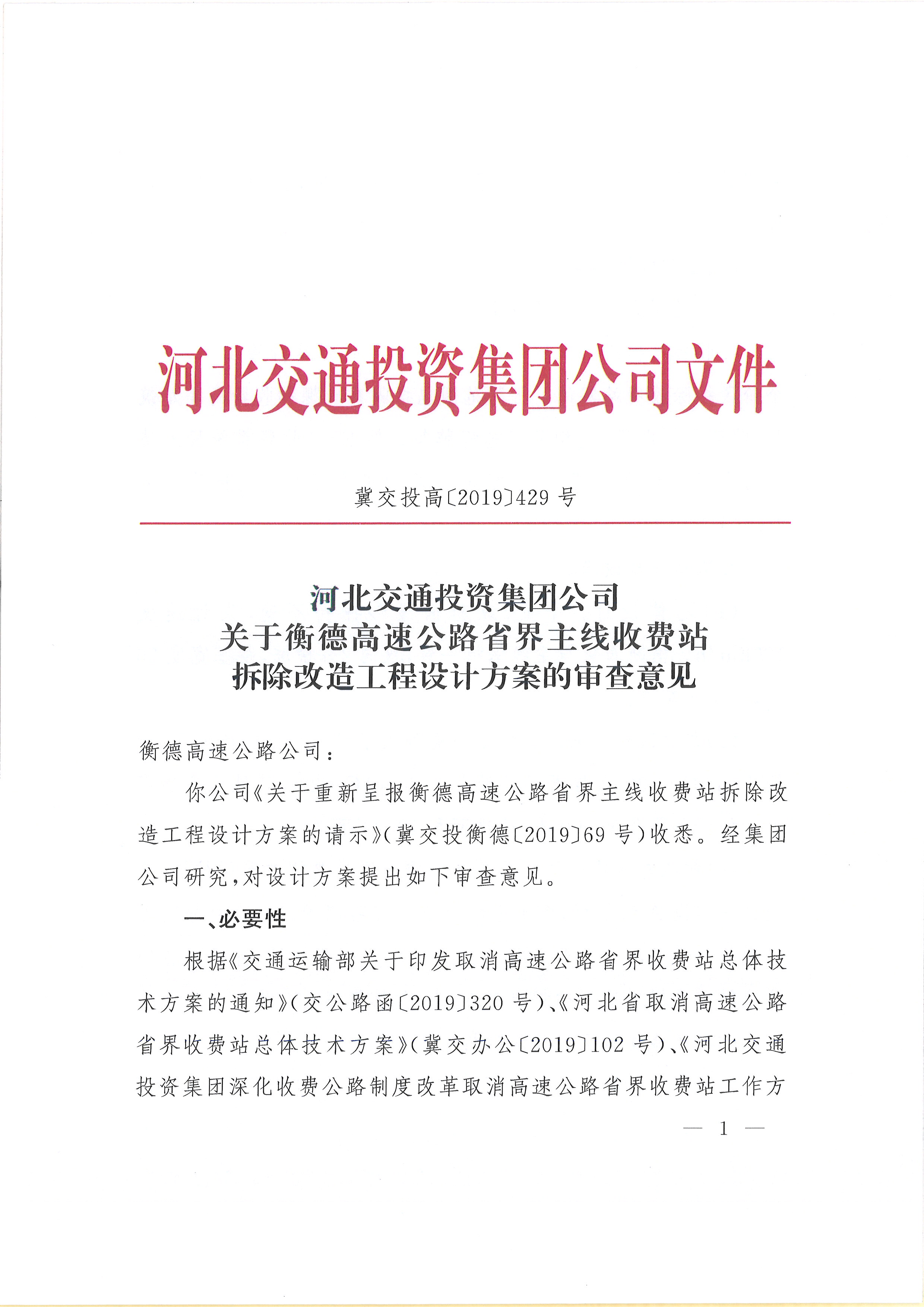 關(guān)于衡德高速公路省界主線站拆除改造工程設(shè)計方案的審查意見