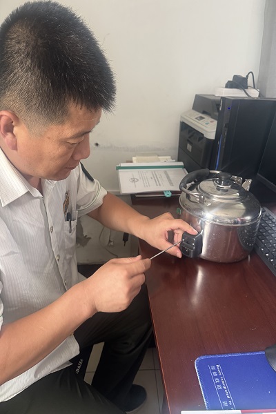 受食堂改造影響,龍華收費站職工飲用熱水改用電水壺燒制。由于天氣炎熱,用水量較大,電水壺出現了“罷工”現象。為節約經費,保證職工正常飲水,辦公室主任張宗強一邊用備用水壺燒水,一邊對不工作水壺進行維修,經過檢查,發現電水壺加熱管因工作量較大而損壞。張宗強找來新的加熱管進行更換,電水壺終獲新生。