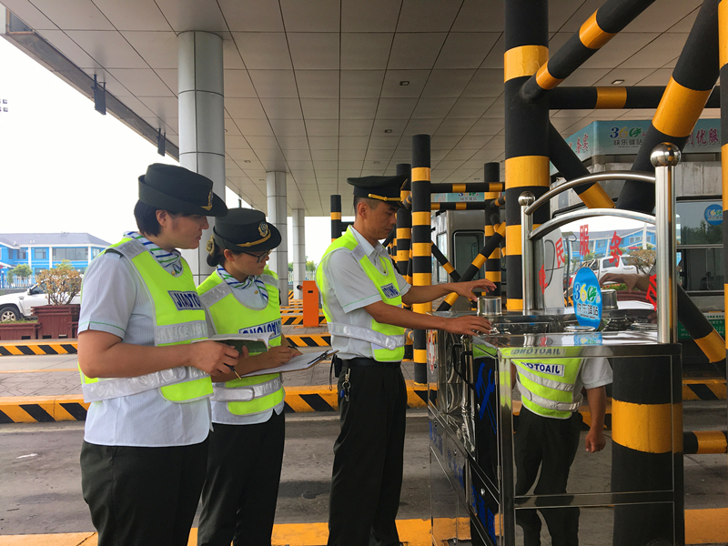此次現場稽查,重點檢查了收費人員文明用語、肢體語言是否規范,著裝是否整潔統一,唱收唱付是否完整、聲音洪亮。同時對便民服務臺是否物品完整,收費廣場內外車道、作業崗亭是否干凈整潔,機電設備是否運轉良好進行抽樣檢查。