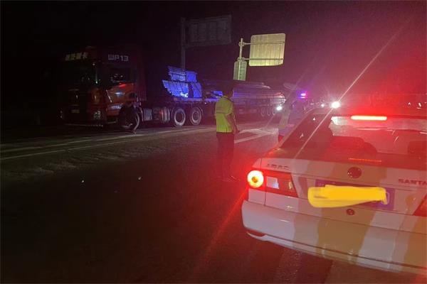 經(jīng)過兩個(gè)多小時(shí)的蹲守,在凌晨2點(diǎn)左右,車輛可疑車輛突然加速沖入收費(fèi)站車道,由于提前預(yù)判和縝密部署,值班站長沈曉東和收費(fèi)班長范海峰于廟鎮(zhèn)北站上道口成功截停這輛闖口車輛,并迅速啟動路警一體化工作機(jī)制,第一時(shí)間將情況報(bào)告王瞳治超站和景縣交警大隊(duì)靳莊中隊(duì),向其提供了相關(guān)照片、視頻。王瞳治超站和景縣交警大隊(duì)靳莊中隊(duì)接到報(bào)案后,根據(jù)掌握的資料立即展開調(diào)查發(fā)現(xiàn)核載49噸,實(shí)載76噸,超載55.1%。