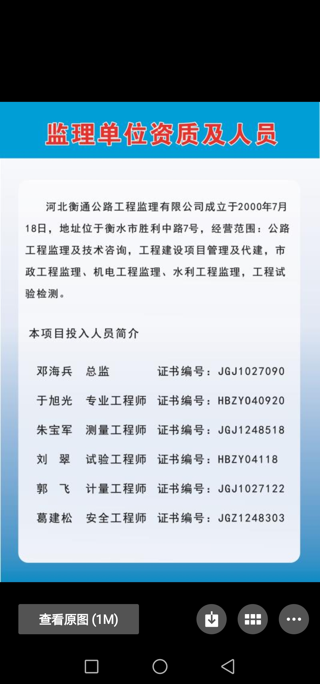 衡德高速公路增設護欄工程監理單位資質及組織機構