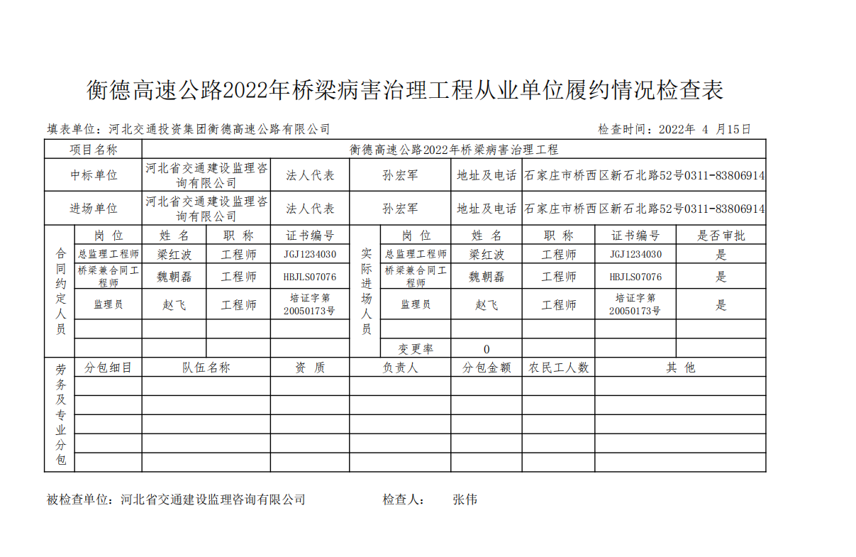 衡德高速公路2022年橋梁病害治理工程從業(yè)單位履約情況