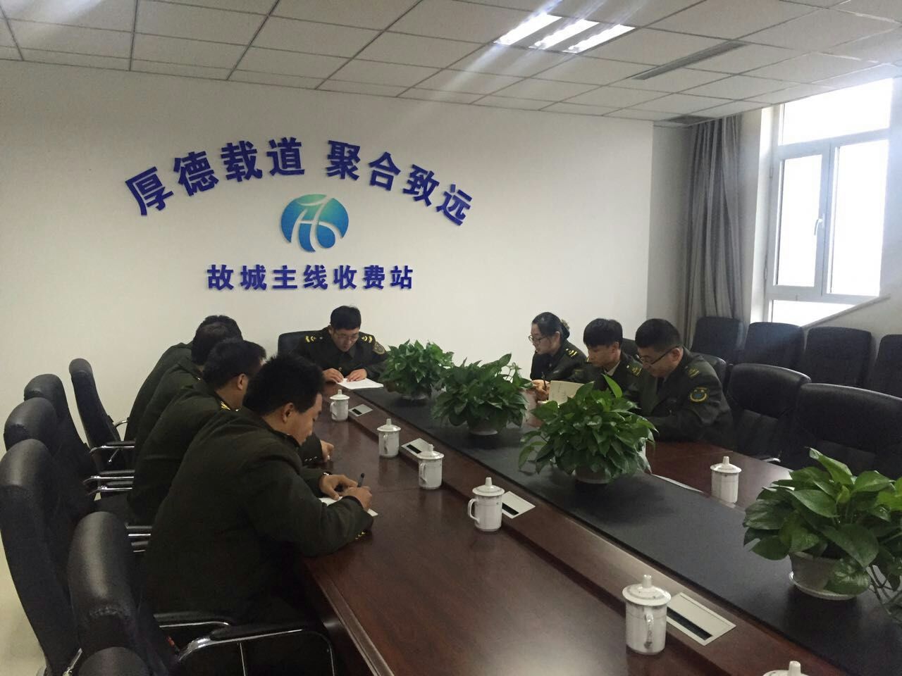 11月16日下午,故城主線收費站收費一班全體成員在會議室學習公司新下發的《衡德高速稽查獎懲細則》文件。