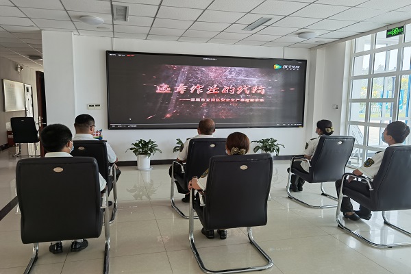 8月11日下午,青蘭收費站收費A班,在值班站長劉憲輝帶領下觀看了《違章作業的代價》安全教育視頻。