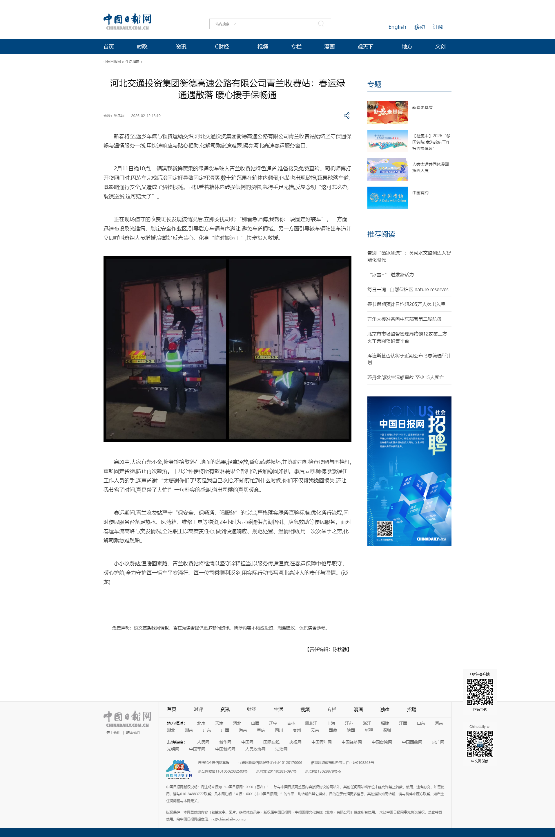 河北交通投資集團衡德高速公路有限公司青蘭收費站:春運綠通遇散落 暖心援手保暢通
