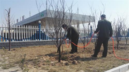 為了進一步提高站區形象,美化站區環境,青蘭收費站于3月12日植樹節組織職工對庭院內的樹木、草坪進行清理和灌溉。