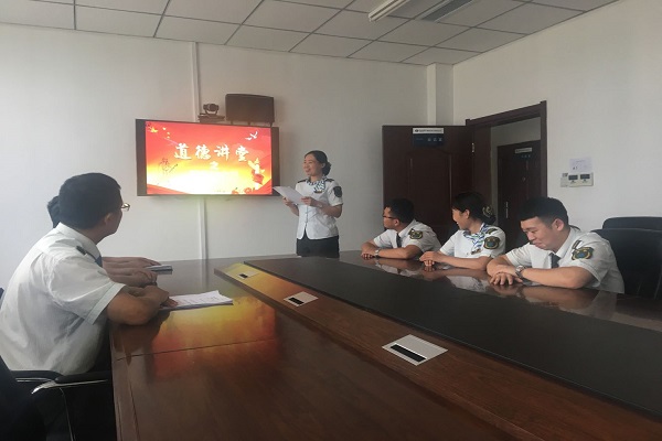2019年6月28日,青蘭收費站德遠班開展了第一期道德講堂活動。此次活動以“學典范——身邊人說身邊事”為主題,由班組評選的“最美衡德人”王志怡分享自己在平凡崗位上敬業(yè)奉獻,勇于擔當?shù)墓适隆?/span>