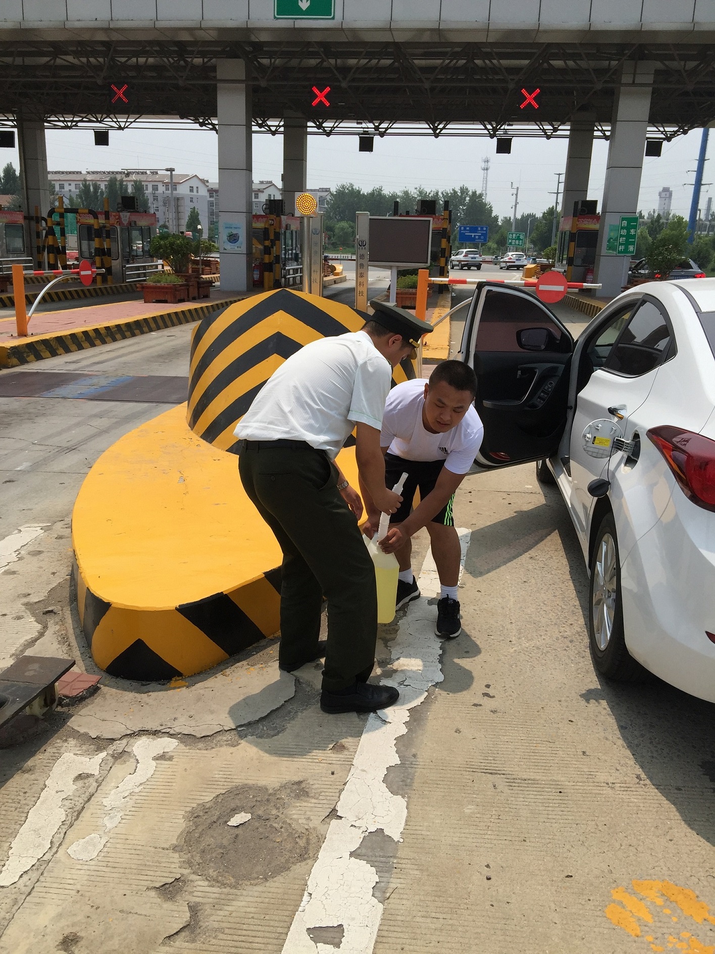 2019年7月14日,又是一個炎熱的中午,太陽像個大火球一樣炙烤著大地,我像往常一樣在104車道收費,這時,只見一位司機師傅從遠處急急忙忙地跑過來,“大姐,我的車子沒油了,停在后面動不了了,我該怎么辦啊?”由于是中午車輛高峰期,來往的車輛很多,車子停在車道口處很危險,司機急的滿頭大汗。我說:“師傅,您別著急,我幫您想辦法。”我連忙通知班長柳嘉誠,班長了解情況后,馬上幫司機一起把車子推到了路邊的安全地帶。司機師傅說他看到車子油不多了,本打算就近下高速找加油站加油,誰知還沒有下高速,車子就停在了收費站。由于司機不是本地人,對當地情況不了解,又急著趕路,所以他十分著急。班長一邊安慰他說,您別著急,到了這里,有我們在,您就放心吧!一邊為他聯系最近的加油站。大約過了十分鐘,加油站為他送來了一桶汽油,班長柳嘉誠幫助司機一起加上了汽油,并送他安全的離開。司機激動地連聲道謝:“謝謝,這么熱的天,真的太感謝了!”