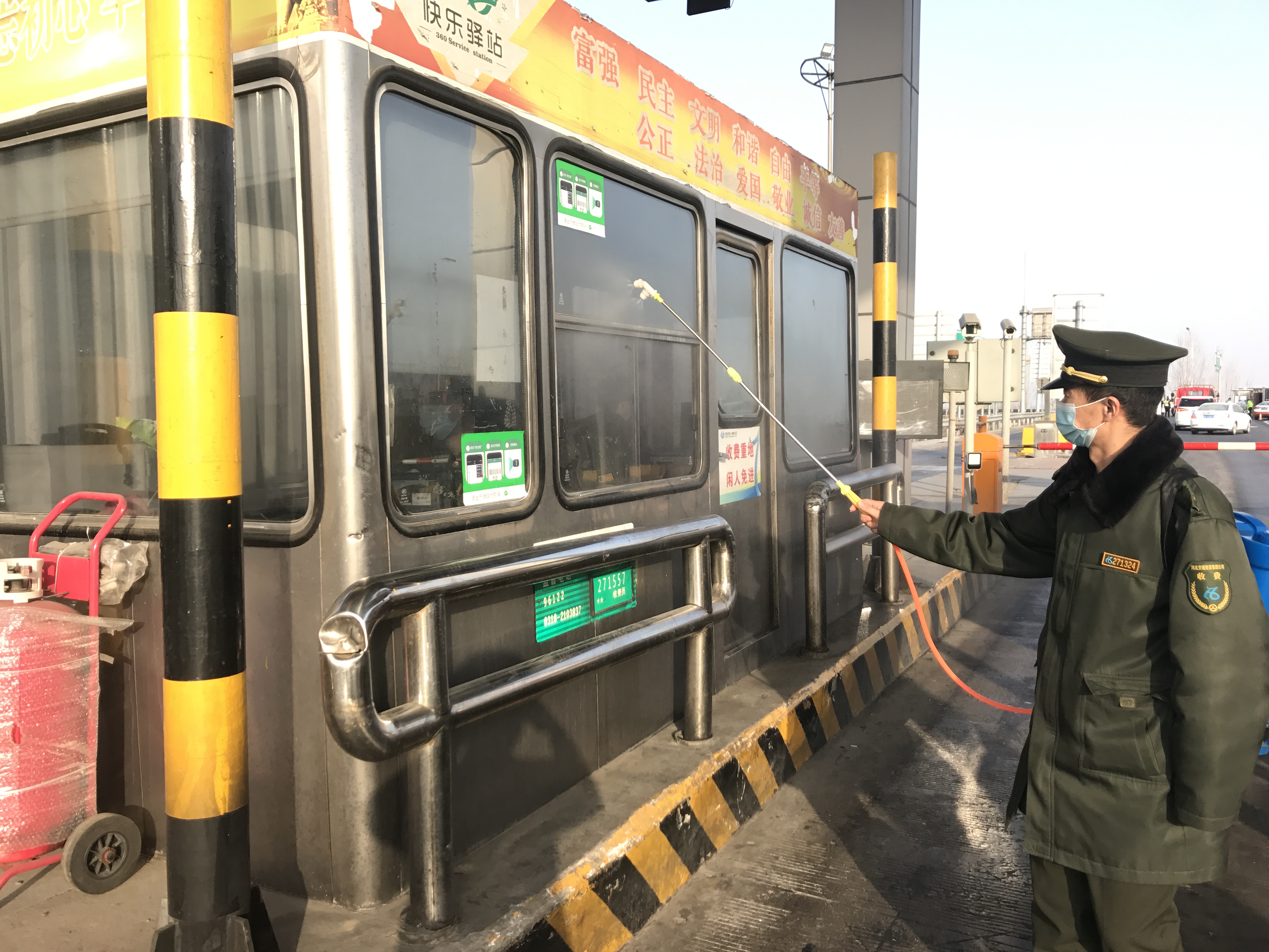 嚴格執行每人每日體溫上報、“綠碼”通行制度;持續加強收費崗亭、車道和宿辦樓等重點區域的消毒通風;為職工配齊配足口罩、手套等防疫物品,做到在崗期間勤消毒、勤洗手,切實提高全體職工自我防范意識,從源頭預防和遏制病毒傳播。
