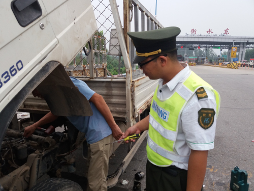 2016818日的上午,一輛白色貨車停在了衡水東站的廣場一側。D班班長王玉龍及收費員張釗立即上前詢問司機的緣由。兩人在得知是因為汽車發生故障時,王玉龍班長趕忙拿來工具箱并協同司機共同修理汽車。收費員張釗拿來水壺給司乘人員倒水。司乘人員再三表示感謝并說:“衡水東站的工作人員真熱情!”王玉龍班長連忙說:“不用謝。以后再路過衡水東站有什么需求直接找我們,我們就是你們的家人。”