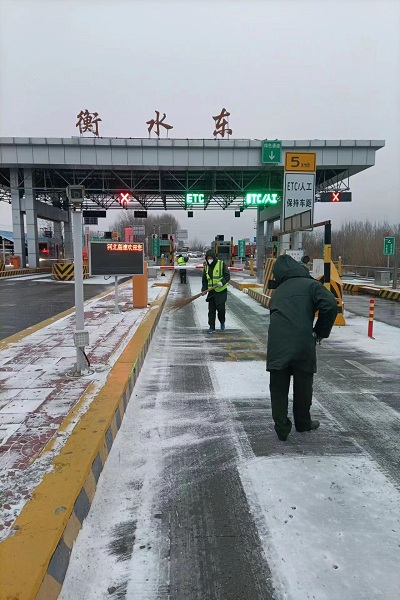 衡水東收費(fèi)站積極應(yīng)對(duì)惡劣天氣,鏟冰除雪,確保站口安全暢通,用實(shí)際行動(dòng)踐行溫暖旅途。