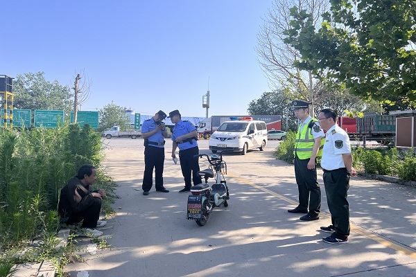 6月8日下午16時,在衡水東收費站入口,收費班長發現上道口有一名騎電動車的男子飛快地行駛過來,班長立刻上前截停并詢問情況。