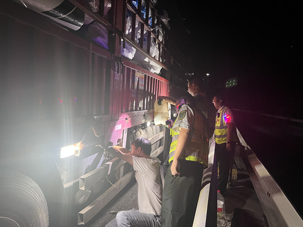 8月24日23時許,衡水東收費站收費B班班長侯良瑋正在收費廣場疏導車輛時忽然發(fā)現(xiàn)在一個手提白色塑料桶步履匆匆的身影正朝著收費車道走來,于是立刻跑上前去了解情況,經(jīng)詢問得知該司機的同車隊隊友車輛因燃料耗盡迫停在距離收費站約400米處的匝道圈無法行駛,該司機決定步行將油桶送至高速公路故障車輛處。收費班長侯良瑋緊急勸阻并立即上報值班站長。值班站長房磊和王瑞接到消息立即行動,考慮到車輛處于故障情況急需用油,天色昏暗高速公路通行存在安全隱患,兩位值班站長和班長侯良瑋決定“護送”司機到車輛位置。他們身著反光背心,肩戴閃光警示燈,手持遠距手電筒,為司機照亮了一條安全之路。到達故障車輛處后,發(fā)現(xiàn)由于該車輛迫停導致后續(xù)車輛擁堵,值班站長房磊立即和班長侯良瑋協(xié)助司機共同加油,值班站長王瑞為司機照明方便操作。在眾人的共同努力之下,車輛迅速啟動恢復正常,兩位司機連聲道謝,三名同志來不及與司機道別便投入到了疏導車輛的工作當中來,5分鐘后高速公路恢復安全通暢狀態(tài),三人便緊貼護欄安全返回收費站。