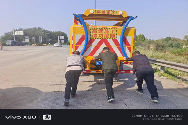 10月8日10時(shí)左右,一輛施工作業(yè)車在衡水東收費(fèi)站繳費(fèi)后并不正常駛離,收費(fèi)員立刻向司機(jī)詢問(wèn)情況。司機(jī)著急的說(shuō):“車沒(méi)油了,打不著了。”收費(fèi)員立即將情況上報(bào)值班站長(zhǎng)并開(kāi)啟備用車道,在崗巡查的值班站長(zhǎng)聞?dòng)嵹s來(lái),幫助司機(jī)將車推出車道,停在安全地帶,并告知司機(jī)加油站位置。司機(jī)師傅激動(dòng)地連聲說(shuō)“謝謝”,值班站長(zhǎng)王瑞笑著說(shuō):“不客氣,為司乘排憂解難是我們的職責(zé)。”