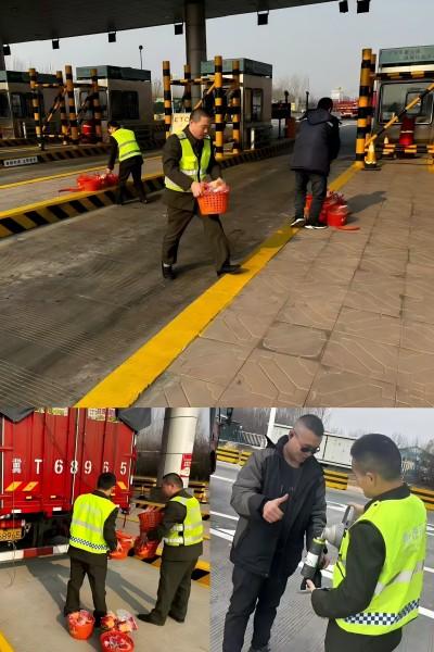 1月25日15時30分,一輛綠通車輛因剎車過急導致貨物傾斜,打開后門時貨物散落一地,為確保站口安全暢通,經與司機師傅溝通后,班長柳嘉誠引導車輛至備用車道,并帶領收費人員迅速行動,協助司機將貨物重新裝車,并為司機送上熱水。司機師傅對收費站工作人員的及時援助表示衷心的感謝,激動地說:“非常感謝你們的幫助,若不是你們幫忙,我真的不知道怎么辦才好,這大冷天的,還要耽誤回家過年,你們的服務太暖心了!”