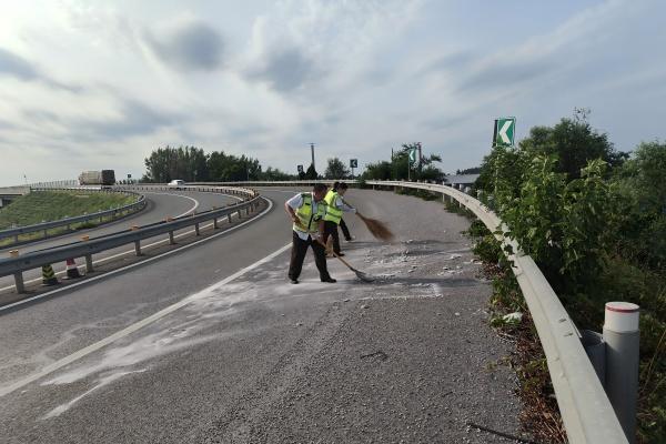 ? ? ? ?經(jīng)過近半小時的努力,匝道圈里的磚塊和碎屑被清理干凈。看著恢復暢通的道路,三人露出了滿意的笑容。他們用實際行動詮釋了責任與擔當,在烈日下為司乘人員守護著平安與暢通。
