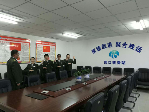 為規(guī)范班組成員收費發(fā)卡肢體語言,提升班組整體文明服務(wù)水平。2016年10月23日,鄭口收費站收費B班組織了以“肢體語言練兵”為主題的班組自主管理活動。