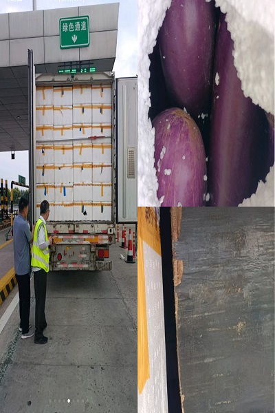 當日,一輛6軸貨車下道時,向收費站工作人員聲稱車載貨物為茄子(屬鮮活農(nóng)產(chǎn)品,可享“綠色通道”通行費減免政策)。當班收費員與收費班長隨即對該車開展查驗工作,過程中收費班長發(fā)現(xiàn),該車采用密封性集裝箱運輸,與常規(guī)鮮活農(nóng)產(chǎn)品運輸?shù)某ㄅ窕虬氤ㄅ穹绞讲环?,存在偽裝“綠色通道”車輛的重大嫌疑,遂要求對車輛進行卸貨查驗。