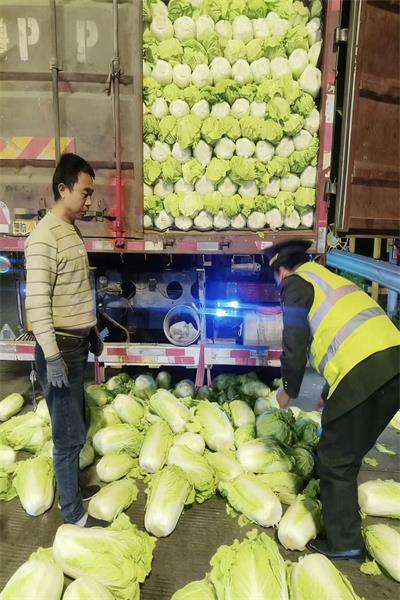 “師傅您別慌,我們來幫您!”收費員立刻上前拍肩安撫,話音未落就彎腰抱起一棵裹著薄霜的白菜,小心翼翼往車廂里遞。旁邊在崗的幾位收費員聽見動靜,紛紛跑過來搭手:有人爬上貨車,把白菜一棵挨一棵碼整齊并壓實;有人在地面彎腰撿拾,凍僵的手指緊緊抓著白菜快速傳遞;部分白菜滾落到了路邊的淺溝里,有的收費員索性蹲下身子,伸手將溝里的白菜一棵棵掏出來,手指被溝邊的碎石蹭得發紅也毫不在意。還有人沖司機喊:“師傅,把車往前挪一點點,碼放更穩當!”還主動幫司機師傅檢查了車廂擋板和捆綁繩索,建議他重新加固,避免途中再次掉落。