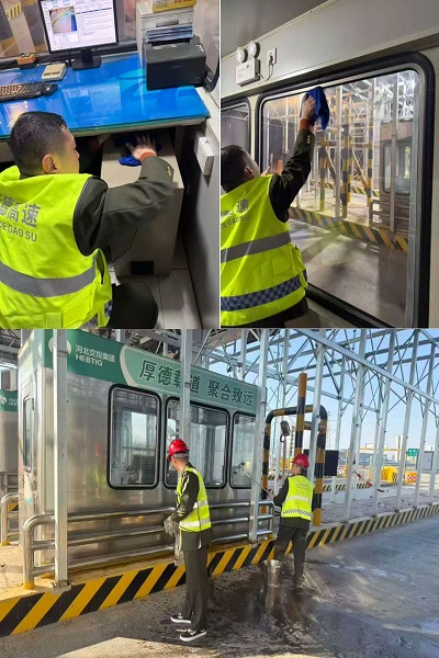 在收費區域,職工對收費廣場、收費車道、收費島頭進行拉網式清理,重點清理廣場邊角、綠化帶內積存垃圾及收費內外廣場邊坡的散落雜物;針對收費崗亭開展“深度保潔”,不僅擦拭窗口玻璃、清洗操作臺、整理辦公物品,還對 ETC 崗亭內擺放的雜物、崗亭桌面及桌下的灰塵污垢進行清理,確保亭內環境整潔規范、設施完好;同時,對收費島頭所有機電設施進行細致擦拭,清除設備表面灰塵與污漬,保障設施正常運行。