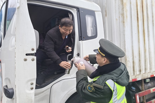突如其來的封路讓不少司乘心生焦躁,滯留司機王師傅接過熱水后感慨道:“本來堵在路上心里又急又煩,沒想到收費站的同志還專門送水過來,這杯熱水喝下去,身子暖了,心里更暖。”除了暖心送水,收費站還迅速開放站內衛生間、臨時休息區,安排專人實時更新并解答路況咨詢,同時備好急救箱、工具箱等物資,主動為有需要的司乘提供幫助,全方位滿足滯留人員基本生活需求。