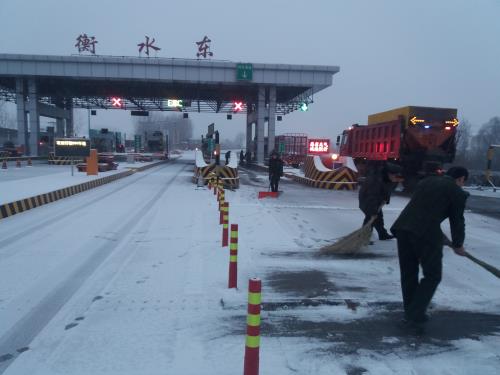 天氣預報221日迎來一次降雪,衡水東站提前做好除雪保暢應急工作,除雪物資準備齊全,除雪應急保暢小組人員提前到站備崗待命。下午,雪花在空中飄舞,為確保收費站口安全暢通,我站及時啟動除雪保暢應急預案,開始由于地面溫度高,雪花落到地面便立刻融化,到了傍晚地面出現積雪,我站組織人員及時開展除雪保暢工作,衡水東站職工以高度的責任感和使命感,時刻為過往收費站口的車輛提供安全的行車環境。