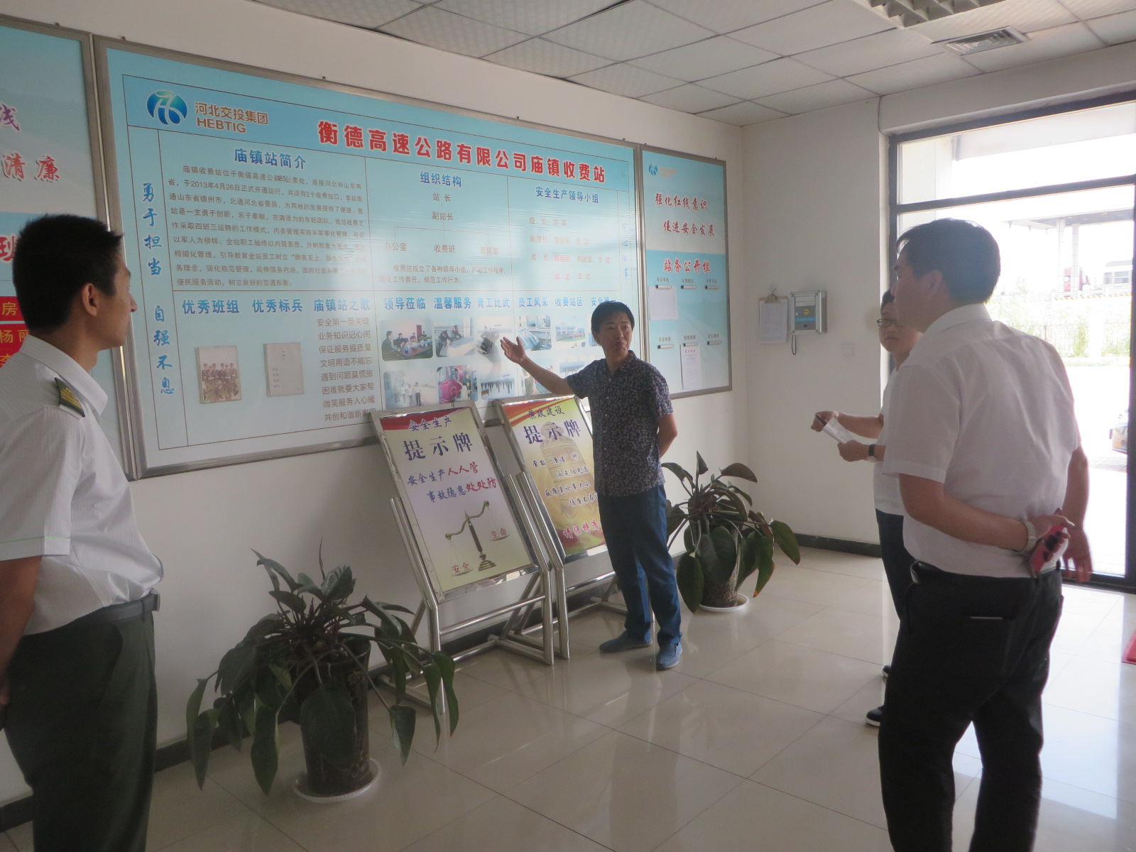 62日上午,衡德公司收費(fèi)運(yùn)營(yíng)部趙主任來到廟鎮(zhèn)收費(fèi)站,對(duì)廟鎮(zhèn)站四月份綠化種植成活情況和樓內(nèi)企業(yè)文化展牌進(jìn)行了巡查。