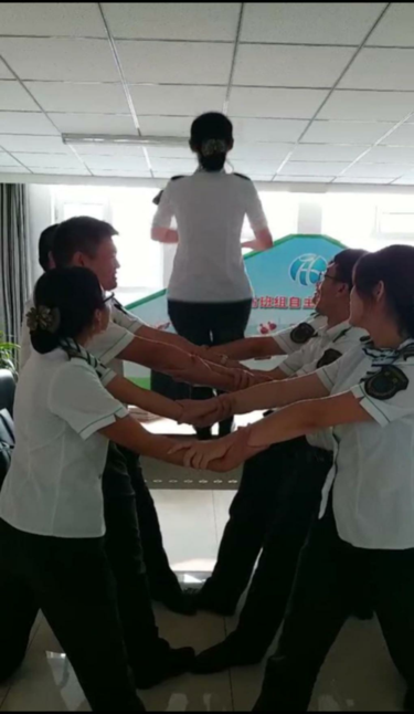準備工作完成后,班組成員于珊珊自告奮勇第一個進行背摔,其他六個人作為支撐點相對而站,雙手搭在對方的胳膊上,腳尖頂住腳尖。在她調整好位置和呼吸后,大家齊聲問道:準備好了嗎?她有力的回答道:準備好了!然后她筆直的在桌子上背躺下來,在躺下的那一刻,班組其他六個人使出全力穩穩地接住了她。接下來每個人都嘗試了這具有特殊意義的活動。“信任背摔”讓大家體會最深的是人與人之間的信任和真誠,站在兩米左右的平臺上,毫無顧忌的躺下去,需要的不僅是勇氣,還有對臺下伙伴的充分信任。